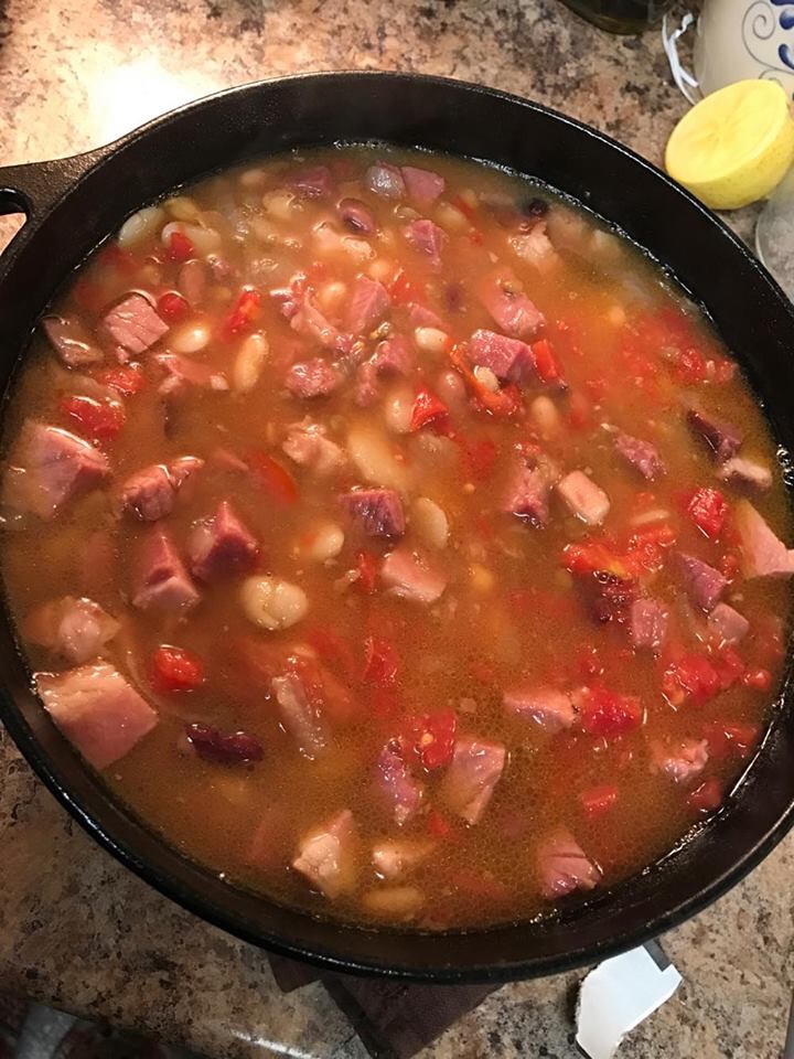 I do not like ham and bean soup. I don’t like beans in any capacity. I may be a carnivore but I don’t really like ham. We had a few snow days in March, so I made a list of meals to make and freeze while I was snowed in for a few days. Ham and Bean is one of Ethan’s favorites so I added it to the list. I cooked this recipe low and slow in our cast iron Dutch oven. Seriously, cast iron is truly the best. This can also easily be done in a crock pot if you do not have a Dutch oven.
