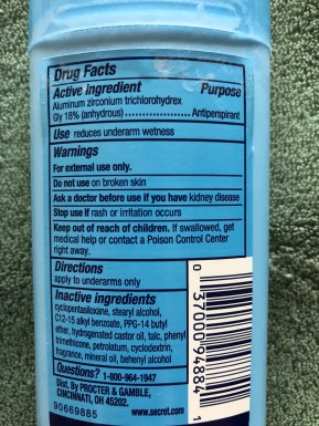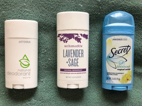 I ran out of Schmidt’s and wanted to try Doterra. In between, I used Secret for a few weeks. I developed a rash on the back of my arms that itched, I smelled to high heaven (my poor husband and child), I sweat so, so bad, and the smell of fake fragrance was killing me. It’s amazing how easy it is to go from fake stuff to natural, but it is awful to do the reverse.
