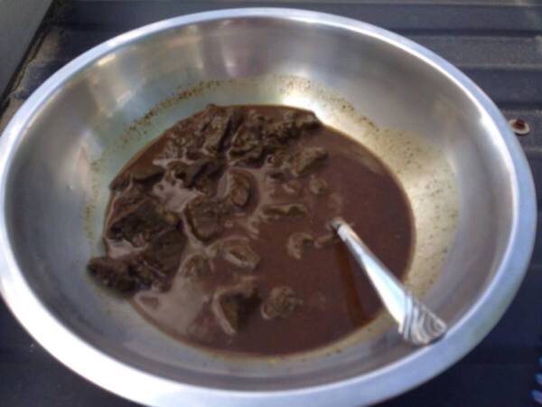 I cut the 4 blocks I was using off of the main block and did a rough chop. This helps them break down much easier. To the bowl of henna, I added my HOT, STRONG, coffee. The directions encourage you to use a double boiler to help break down the blocks. I found that the hot coffee and a spoon worked just fine. If they had not broken down I would have done that step, but I found it unnecessary.