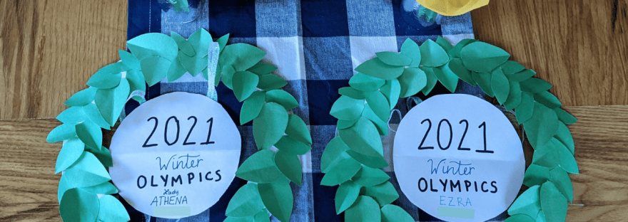 Of course a week about the Olympics wouldn’t be complete without actually watching some Olympic competitions! Did you know the Olympics have an entire YouTube channel!? Watching competitions was a huge hit! Athena loved the gymnastics and snowboarding. My personal favs are the ice dancing and hockey (both field and ice obviously).