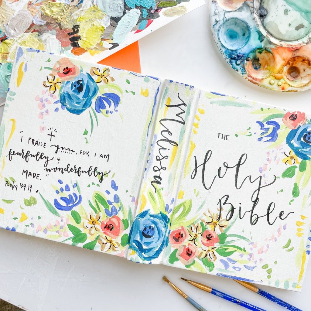Kourtney asked me what kind of colors they like, what kind of flowers they like, and any little details I’d like to add. I also had to pick verses for her to do on the back cover. Honestly, I trusted Kourtney and wanted her to have as much free reign as possible while giving her just a smidge of direction.