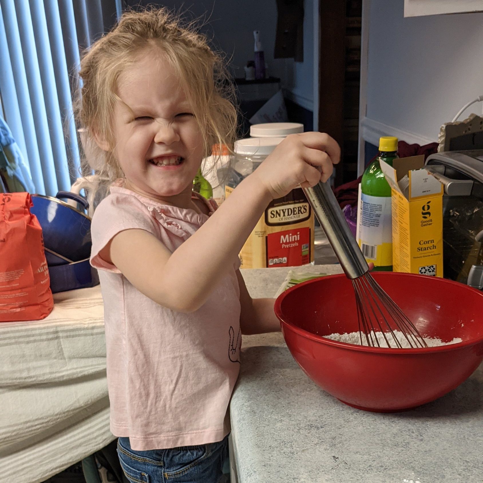 PTL my child took a nap for the first time in weeks. While she was napping I made the dough and set it to rise. When she woke up I rolled and buttered the dough-balls, and she sugared them before placing them in the bundt pan.
