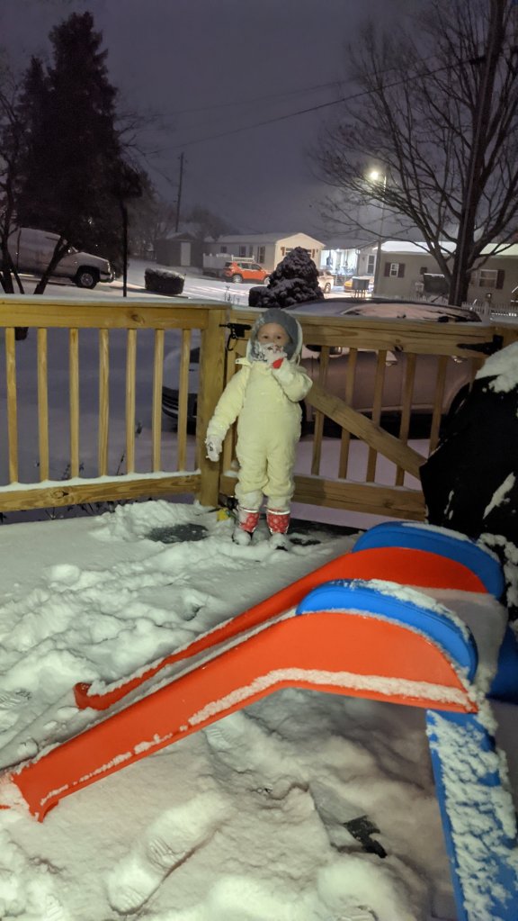 What’s more, Ethan doesn’t start until March 8th. That means we’ve had an entire solid month with him home. As most moms can probably attest, dad being home like that can be a blessing and a pain in the butt. For the most part, I’ll admit it’s been nice. We can easily divide and conquer the girls. He’s gotten a whole entire month with them. Baby snuggles. Athena baking him 18 meals a day in her kitchen. Playing in all of the snow. It’s been a sweet time for them all.