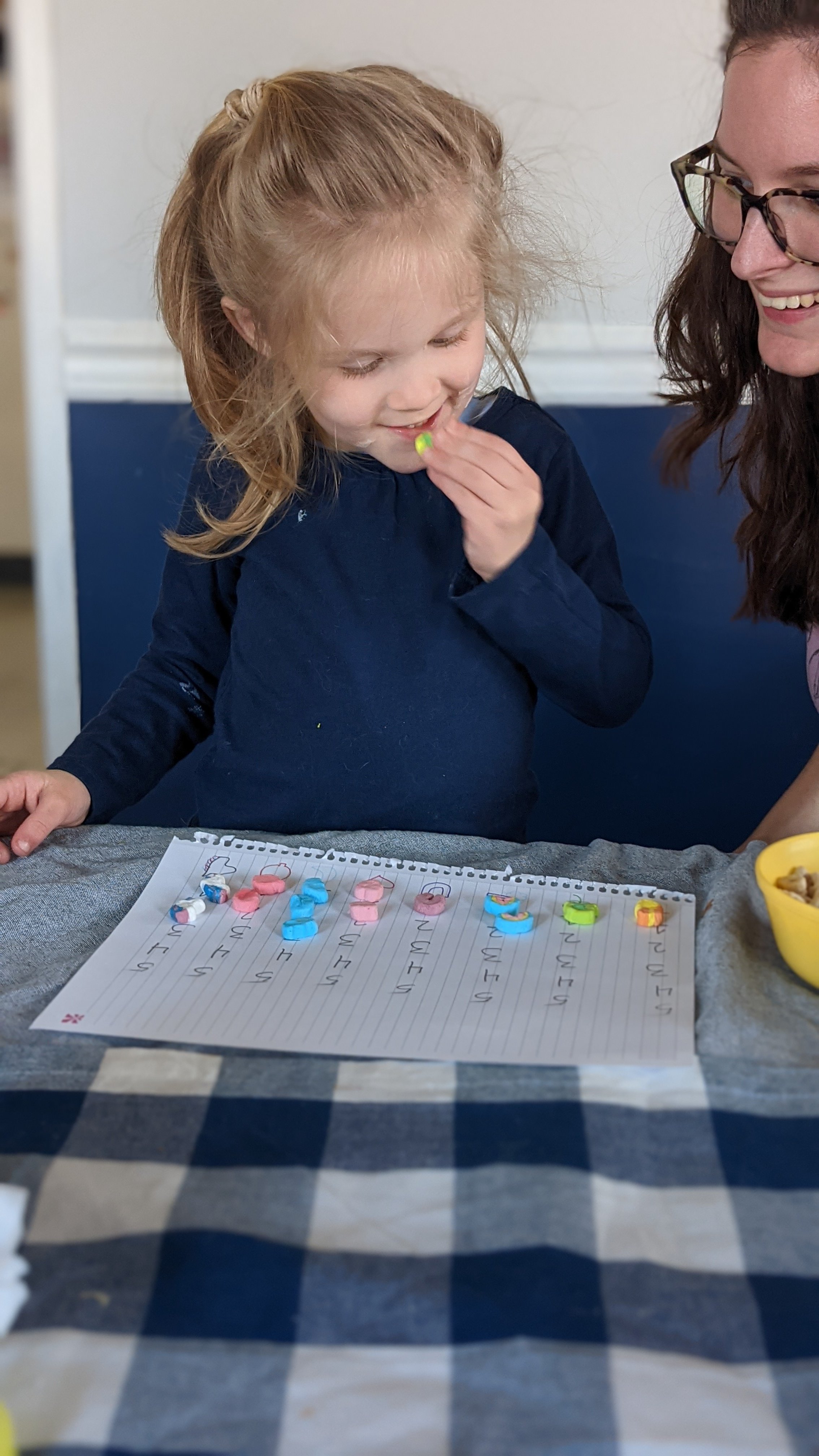 Everyone likes to make fun of me for being “crunchy.” We typically don’t get sugary cereal, or at least cereal that’s not organic/non-GMO. But, I am not a monster. Is it even St. Patrick’s Day if we DON’T play with Lucky Charms? It’s all about balance. The week of St. Patrick’s Day, I would pour Athena a bowl of cereal. She sorted and counted the different marshmallows to “earn” eating her bowl. And before someone calls foul, she gets a bowl of oat meal or pancakes or “real breakfast” well before this activity. By the time we do the cereal sorting, she is on second or third breakfast. #hobbitlife