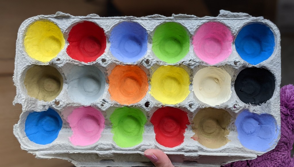 Paint the egg carton slots various colors. I had an 18 count, so popular colors I duplicated.