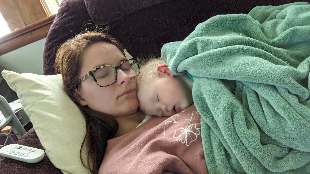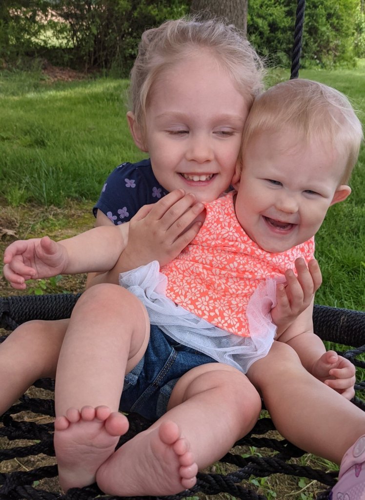 In a brief moment of calm, while Eleanor napped, Athena and I went outside. As per usual, she wanted to swing on her spider swing. But this time she said, “swing with me mommy.” The swing is currently on a precariously creaky limb (it’s moving in a few days), but I thought, “we need this.” I managed to lay down on the swing, and she laid on top of me, while I kept a leg out to keep us going. It was extraordinarily uncomfortable for 15 different reasons, but I could feel her whole little body melt.