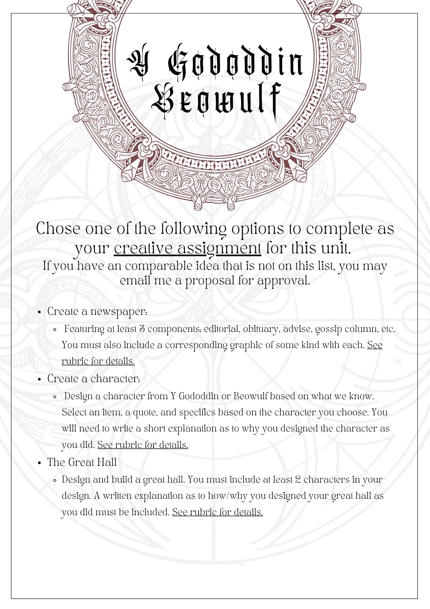 I never understood why something like a paper was thought to prove intellect and understanding above a creative project, or even a presentation. Or why a test was seen as superior to a presentation. The point of assessment is to prove understanding and retention. Why then, are some assessments seen as better than others? We know too much about how brains work to believe that a test or an essay are the only way. Some of the most profound assignments I’ve given are creative, and character driven; NOT a test. That is not to say they don’t have their place. Which is why I include all 4 core assignments to my units, and they are equally graded at 100pts. We do straight points, no weights. All assignments not those core 4 are usually 25pts or less.