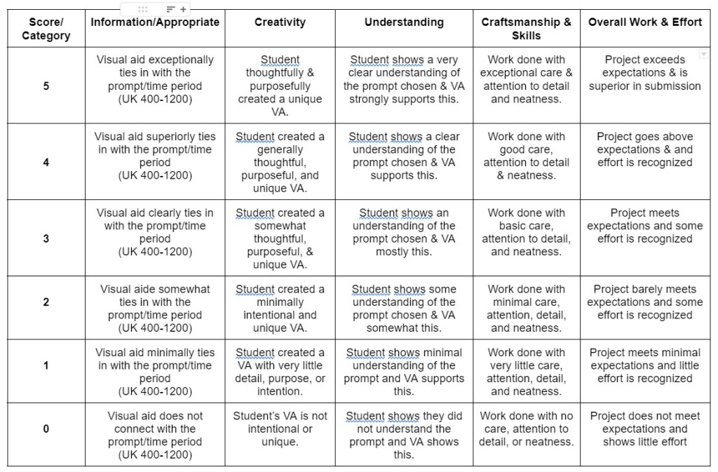 1. I will ALWAYS give them as many resources as possible to succeed: rubrics, assignment descriptions, external resources like videos, check lists, etc…