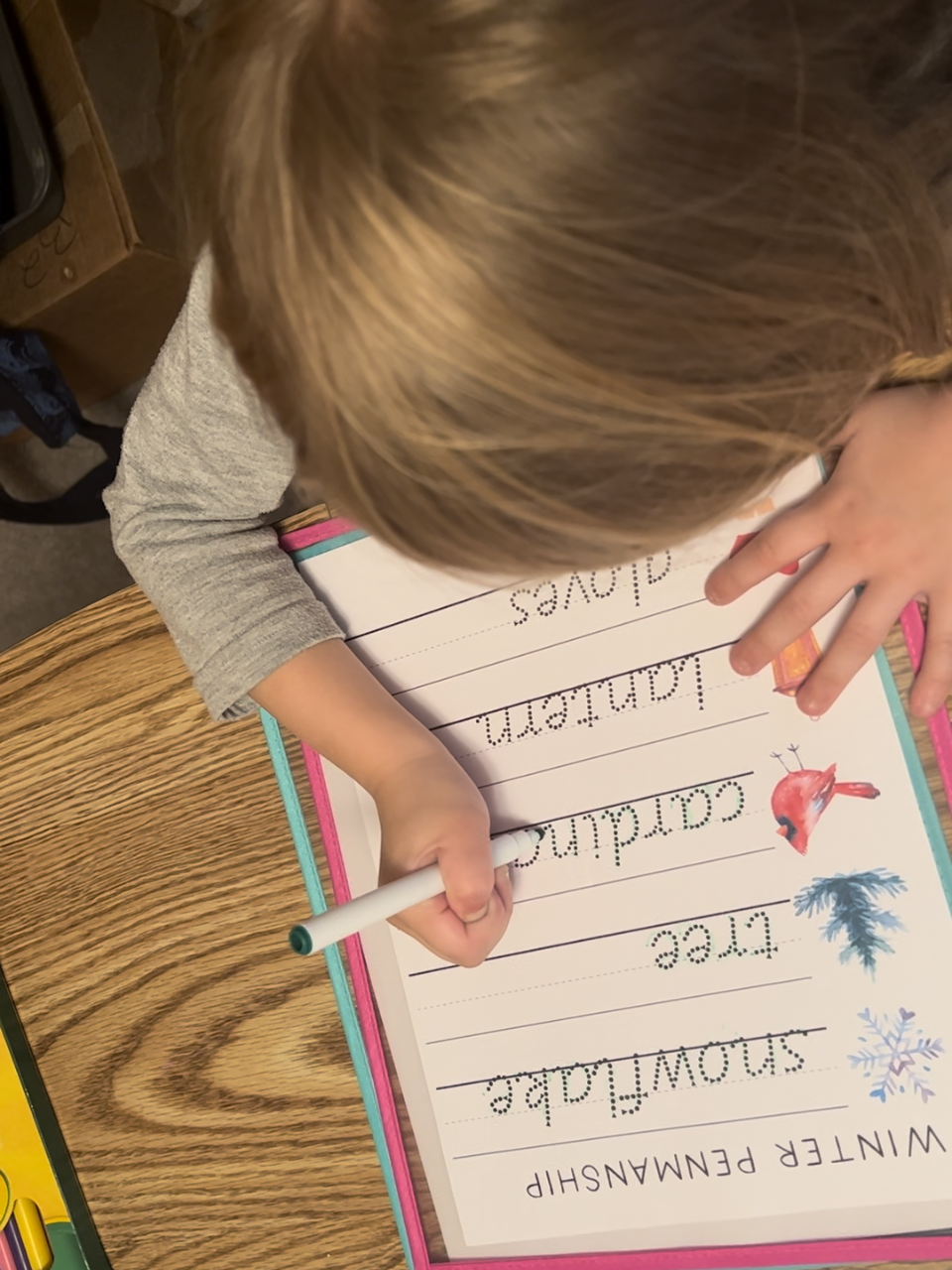 As we are on the letter “W” currently, we are going to finish out our calendar year with a letter a week. Switching it now certainly doesn’t make any sense. We will pick up with a letter a day in January. We will be using all of our usual resources, but a different letter each day, obviously. I’ll be attempting to “track” and gauge if I see any growth/change in our letter retention and application. This, of course, is very difficult, as sheer age and repetition of any kind are going to gain and improve no matter what. But, I’m looking forward to trying for a few months to see how it goes!