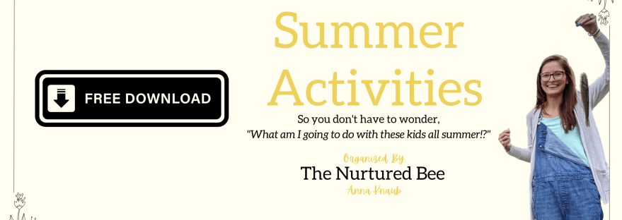 So mix & match weeks! Check out my ever growing BOOK LIST with books for the whole family. Do them all or do 1 or 2. My HOMESCHOOL BOARD has the sections featured & more. Whether you homeschool or not, we can all use a little help to get through the summer! As always, we love to see our friends and I’d love for you to follow & tag @thenurturedbee on Instagram!