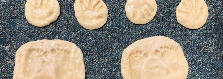 Salt dough crafts may be nearly as old as time...literally. Salt dough is often the mother's version of fossilizing their children (or grandchildren) through out the years. I am no different. Salt dough is exactly as it sounds- a dough with salt. 2 cups salt 2 cups flour 1 cup of water (I kept an… Continue reading Salt dough